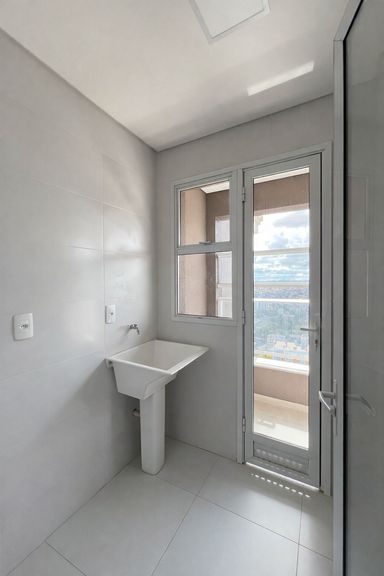 Sacada gourmet, cozinha em conceito aberta, banheiro social, área de serviço e 1 vaga de garagem.