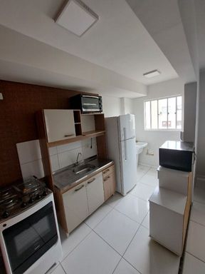 - Cozinha planejada, com armários e eletrodomésticos