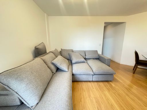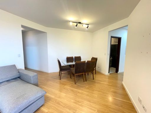 - Sala ampla com sofá e mesa de jantar para 6 lugares