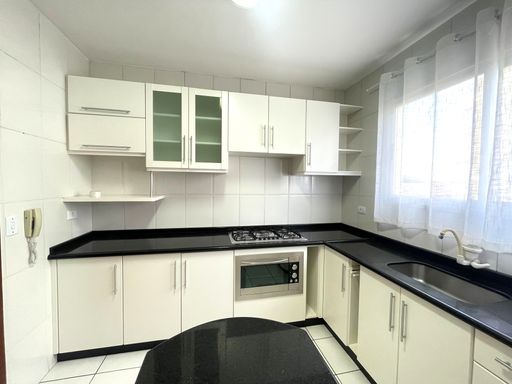 - Cozinha planejada equipada com forno elétrico e cooktop
