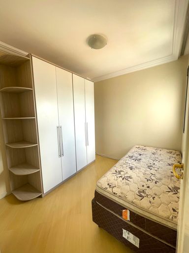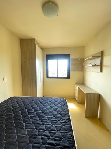 - Quarto Suíte: contém uma cama box, guarda-roupa e escrivaninha