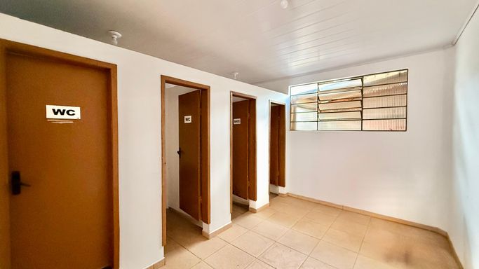 Barracão: 250 m² de área construída com vestiário completo.