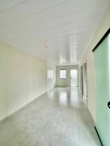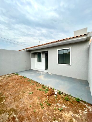 Casa nova de esquina, com 03 quartos, sala de estar e jantar, cozinha, banheiro social, área de serviço e sobra de terreno na frente e fundos.