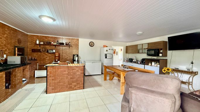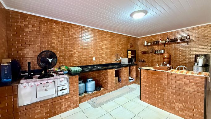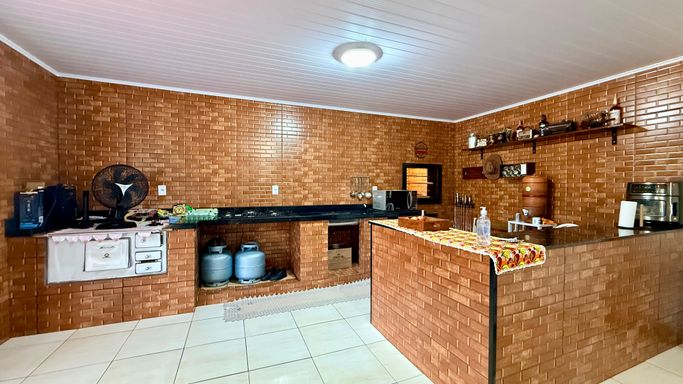 - Sabor do Campo: Cozinha gourmet completa com churrasqueira e o indispensável fogão a lenha. 🍲