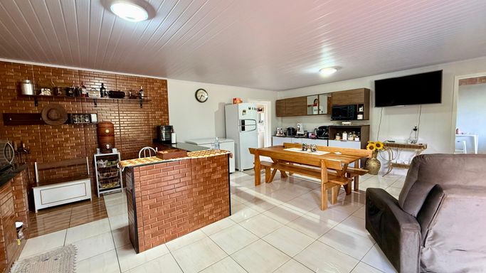 - Casa de Alvenaria: 2 quartos aconchegantes, sala de jantar e TV integradas.
