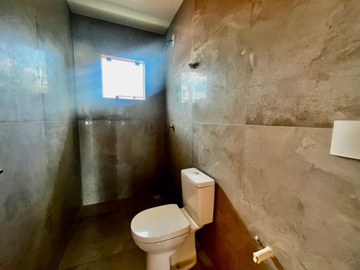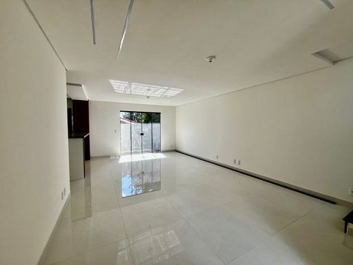 Sala para dois ambientes, cozinha, lavabo, área de serviço e espaço de quintal.