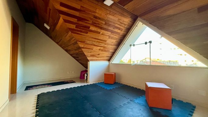 Sótão Versátil: Um espaço extra incrível! Com Escritório e aconchegante Lareira. Use como Home Office, sala de jogos ou estar! 🔥💻