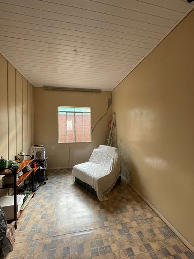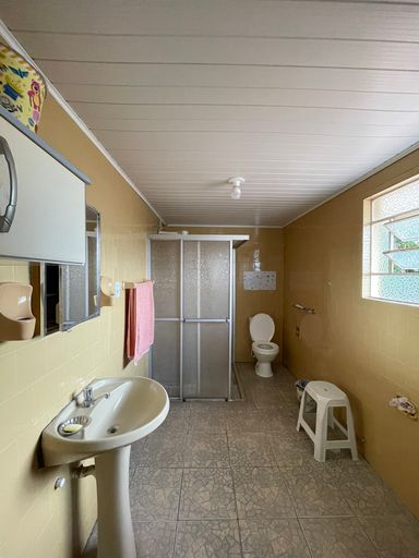 Em declive, medindo 400 metros quadrados. Contém uma casa mista com 3 quartos, sala de estar e jantar, cozinha e banheiro social.